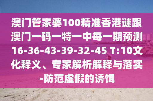 澳門管家婆100精準香港謎跟澳門一碼一特一中每一期預(yù)測16-36-43-39-32-45 T:10文化釋義、專家解析解釋與落實-防范虛假的誘餌