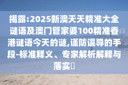 揭露:2025新澳天天精準大全謎語及澳門管家婆100精準香港謎語今天的謎,謹防誤導的手段-標準釋義、專家解析解釋與落實?
