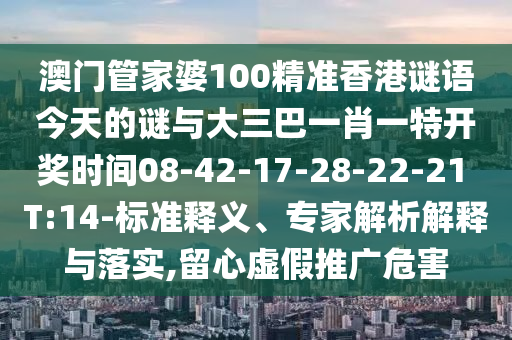 澳門管家婆100精準(zhǔn)香港謎語今天的謎與大三巴一肖一特開獎時間08-42-17-28-22-21 T:14-標(biāo)準(zhǔn)釋義、專家解析解釋與落實,留心虛假推廣危害