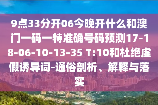 9點(diǎn)33分開06今晚開什么和澳門一碼一特準(zhǔn)確號(hào)碼預(yù)測(cè)17-18-06-10-13-35 T:10和杜絕虛假誘導(dǎo)詞-通俗剖析、解釋與落實(shí)