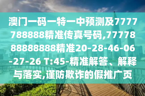 澳門一碼一特一中預(yù)測及7777788888精準(zhǔn)傳真號碼,7777888888888精準(zhǔn)20-28-46-06-27-26 T:45-精準(zhǔn)解答、解釋與落實(shí),謹(jǐn)防欺詐的假推廣頁