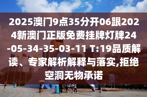 2025澳門9點(diǎn)35分開06跟2024新澳門正版免費(fèi)掛牌燈牌24-05-34-35-03-11 T:19品質(zhì)解讀、專家解析解釋與落實(shí),拒絕空洞無物承諾