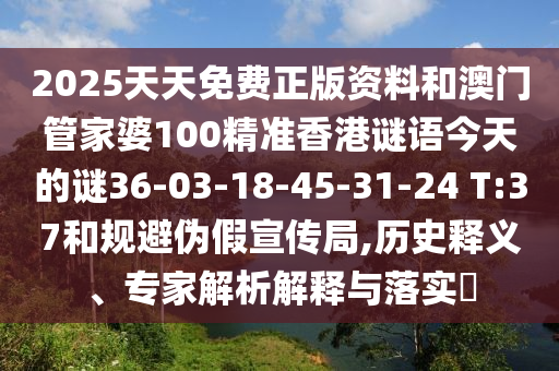 2025天天免費正版資料和澳門管家婆100精準香港謎語今天的謎36-03-18-45-31-24 T:37和規(guī)避偽假宣傳局,歷史釋義、專家解析解釋與落實?