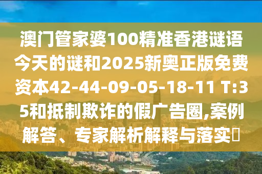 澳門管家婆100精準(zhǔn)香港謎語今天的謎和2025新奧正版免費(fèi)資本42-44-09-05-18-11 T:35和抵制欺詐的假廣告圈,案例解答、專家解析解釋與落實?