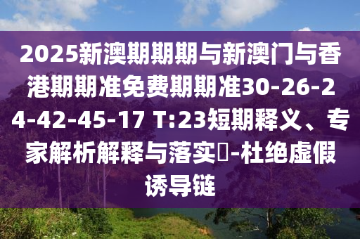 2025新澳期期期與新澳門(mén)與香港期期準(zhǔn)免費(fèi)期期準(zhǔn)30-26-24-42-45-17 T:23短期釋義、專家解析解釋與落實(shí)?-杜絕虛假誘導(dǎo)鏈