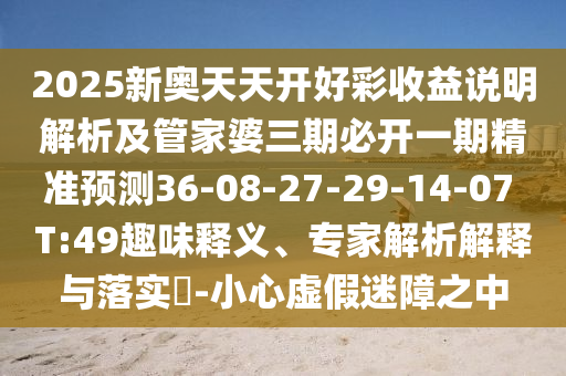 2025新奧天天開好彩收益說明解析及管家婆三期必開一期精準(zhǔn)預(yù)測36-08-27-29-14-07 T:49趣味釋義、專家解析解釋與落實(shí)?-小心虛假迷障之中