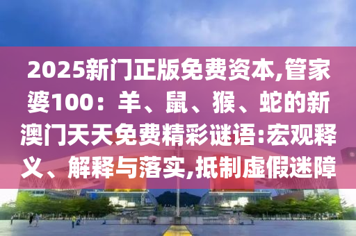 2025新門正版免費(fèi)資本,管家婆100:羊、鼠、猴、蛇的新澳門天天免費(fèi)精彩謎語(yǔ):宏觀釋義、解釋與落實(shí),抵制虛假迷障