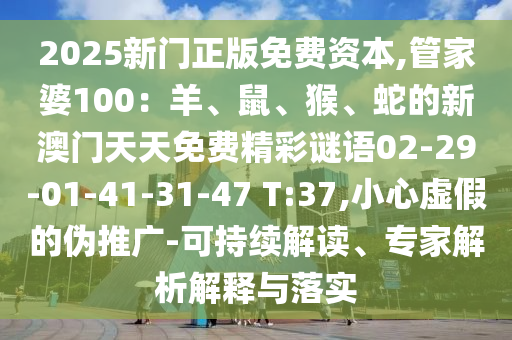 2025新門正版免費(fèi)資本,管家婆100:羊、鼠、猴、蛇的新澳門天天免費(fèi)精彩謎語02-29-01-41-31-47 T:37,小心虛假的偽推廣-可持續(xù)解讀、專家解析解釋與落實(shí)