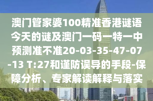 澳門管家婆100精準(zhǔn)香港謎語今天的謎及澳門一碼一特一中預(yù)測準(zhǔn)不準(zhǔn)20-03-35-47-07-13 T:27和謹(jǐn)防誤導(dǎo)的手段-保障分析、專家解讀解釋與落實(shí)