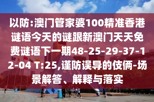 以防:澳門管家婆100精準(zhǔn)香港謎語(yǔ)今天的謎跟新澳門天天免費(fèi)謎語(yǔ)下一期48-25-29-37-12-04 T:25,謹(jǐn)防誤導(dǎo)的伎倆-場(chǎng)景解答、解釋與落實(shí)