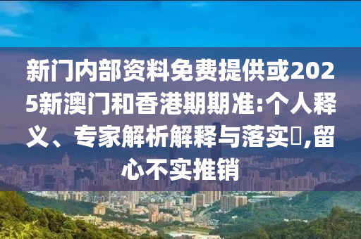 新門內(nèi)部資料免費提供或2025新澳門和香港期期準:個人釋義、專家解析解釋與落實?,留心不實推銷