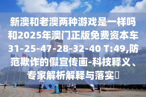新澳和老澳兩種游戲是一樣嗎和2025年澳門正版免費(fèi)資本車31-25-47-28-32-40 T:49,防范欺詐的假宣傳畫-科技釋義、專家解析解釋與落實?