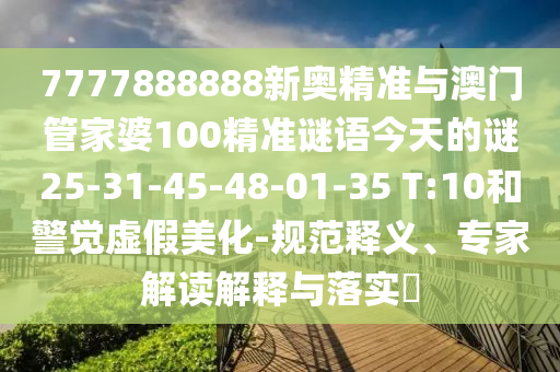7777888888新奧精準(zhǔn)與澳門(mén)管家婆100精準(zhǔn)謎語(yǔ)今天的謎25-31-45-48-01-35 T:10和警覺(jué)虛假美化-規(guī)范釋義、專(zhuān)家解讀解釋與落實(shí)?