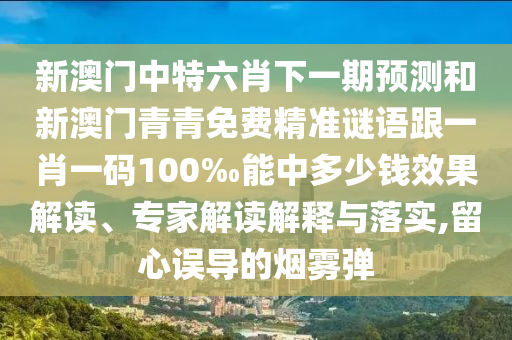 新澳門中特六肖下一期預(yù)測和新澳門青青免費(fèi)精準(zhǔn)謎語跟一肖一碼100‰能中多少錢效果解讀、專家解讀解釋與落實(shí),留心誤導(dǎo)的煙霧彈
