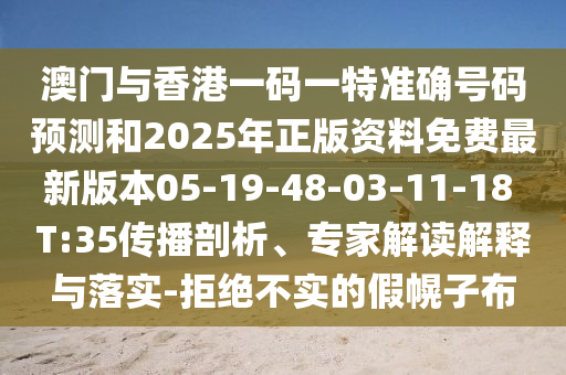 澳門與香港一碼一特準確號碼預(yù)測和2025年正版資料免費最新版本05-19-48-03-11-18 T:35:傳播剖析、專家解讀解釋與落實