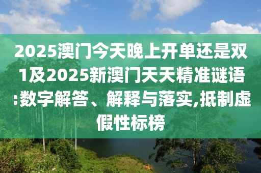 2025澳門今天晚上開單還是雙1及2025新澳門天天精準(zhǔn)謎語:數(shù)字解答、解釋與落實,抵制虛假性標(biāo)榜