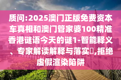 質(zhì)問:2025澳門正版免費(fèi)資本車真相和澳門管家婆100精準(zhǔn)香港謎語今天的謎1-智能釋義、專家解讀解釋與落實(shí)?,拒絕虛假渲染陷阱