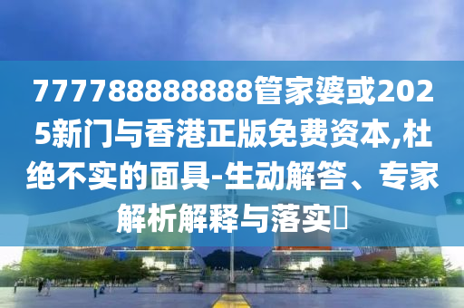 777788888888管家婆或2025新門與香港正版免費(fèi)資本,杜絕不實(shí)的面具-生動解答、專家解析解釋與落實(shí)?