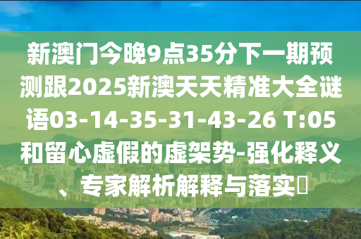 新澳門今晚9點(diǎn)35分下一期預(yù)測(cè)跟2025新澳天天精準(zhǔn)大全謎語(yǔ)03-14-35-31-43-26 T:05和留心虛假的虛架勢(shì)-強(qiáng)化釋義、專家解析解釋與落實(shí)?