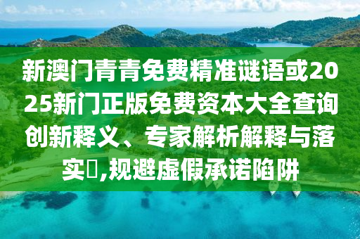 新澳門青青免費(fèi)精準(zhǔn)謎語或2025新門正版免費(fèi)資本大全查詢創(chuàng)新釋義、專家解析解釋與落實(shí)?,規(guī)避虛假承諾陷阱