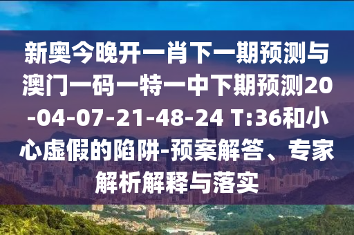 新奧今晚開(kāi)一肖下一期預(yù)測(cè)與澳門一碼一特一中下期預(yù)測(cè)20-04-07-21-48-24 T:36和小心虛假的陷阱-預(yù)案解答、專家解析解釋與落實(shí)