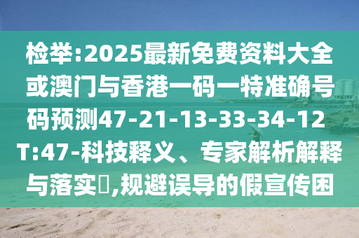 檢舉:2025最新免費(fèi)資料大全或澳門與香港一碼一特準(zhǔn)確號(hào)碼預(yù)測47-21-13-33-34-12 T:47-科技釋義、專家解析解釋與落實(shí)?,規(guī)避誤導(dǎo)的假宣傳困