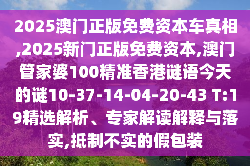 2025澳門正版免費資本車真相,2025新門正版免費資本,澳門管家婆100精準香港謎語今天的謎10-37-14-04-20-43 T:19精選解析、專家解讀解釋與落實,抵制不實的假包裝