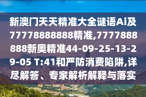 新澳門天天精準(zhǔn)大全謎語Ai及77778888888精準(zhǔn),7777888888新奧精準(zhǔn)44-09-25-13-29-05 T:41和嚴(yán)防消費(fèi)陷阱,詳盡解答、專家解析解釋與落實(shí)