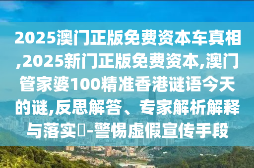 2025澳門正版免費資本車真相,2025新門正版免費資本,澳門管家婆100精準香港謎語今天的謎,反思解答、專家解析解釋與落實?-警惕虛假宣傳手段