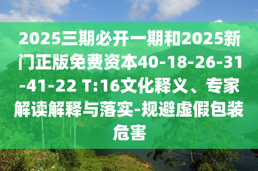 2025三期必開一期和2025新門正版免費資本40-18-26-31-41-22 T:16文化釋義、專家解讀解釋與落實-規(guī)避虛假包裝危害