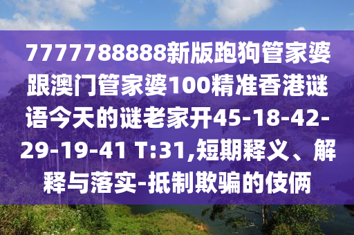 7777788888新版跑狗管家婆跟澳門管家婆100精準香港謎語今天的謎老家開45-18-42-29-19-41 T:31,短期釋義、解釋與落實-抵制欺騙的伎倆