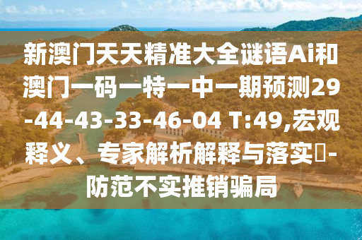 新澳門天天精準大全謎語Ai和澳門一碼一特一中一期預測29-44-43-33-46-04 T:49,宏觀釋義、專家解析解釋與落實?-防范不實推銷騙局