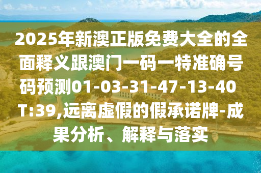 2025年新澳正版免費(fèi)大全的全面釋義跟澳門一碼一特準(zhǔn)確號(hào)碼預(yù)測(cè)01-03-31-47-13-40 T:39,遠(yuǎn)離虛假的假承諾牌-成果分析、解釋與落實(shí)