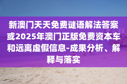 新澳門天天免費(fèi)謎語解法答案或2025年澳門正版免費(fèi)資本車和遠(yuǎn)離虛假信息-成果分析、解釋與落實(shí)