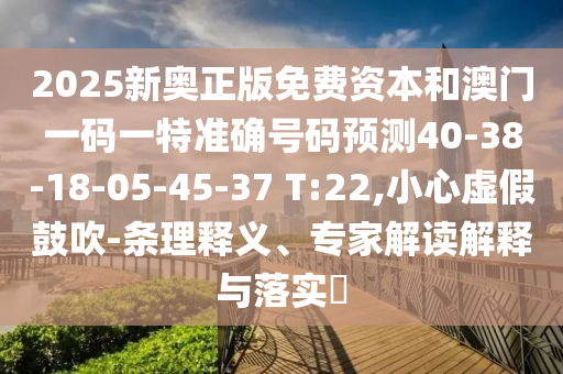 2025新奧正版免費資本和澳門一碼一特準確號碼預測40-38-18-05-45-37 T:22,小心虛假鼓吹-條理釋義、專家解讀解釋與落實?