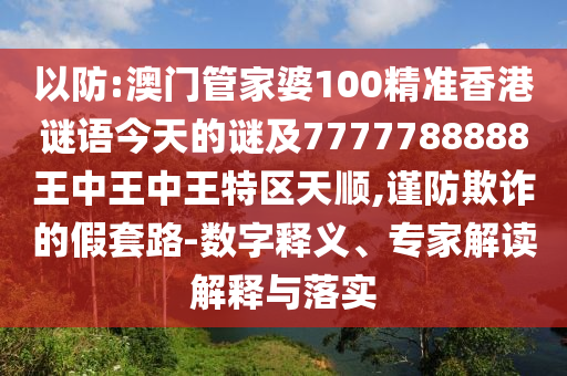 澳門管家婆100精準(zhǔn)香港謎語今天的謎及7777788888王中王中王特區(qū)天順:數(shù)字釋義、專家解讀解釋與落實(shí)