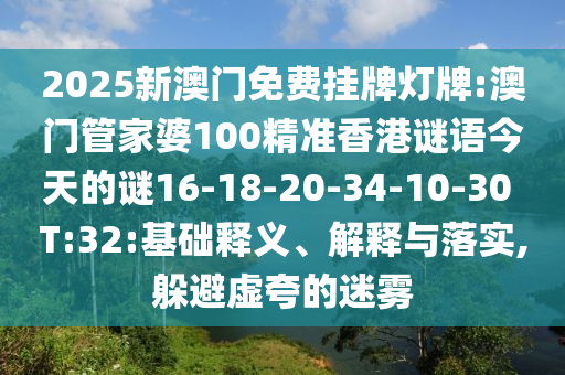 2025新澳門(mén)免費(fèi)掛牌燈牌:澳門(mén)管家婆100精準(zhǔn)香港謎語(yǔ)今天的謎16-18-20-34-10-30 T:32:基礎(chǔ)釋義、解釋與落實(shí),躲避虛夸的迷霧