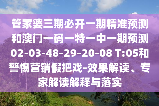 管家婆三期必開一期精準(zhǔn)預(yù)測和澳門一碼一特一中一期預(yù)測02-03-48-29-20-08 T:05的效果解讀、專家解讀解釋與落實(shí)