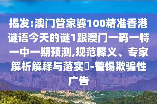 澳門管家婆100精準香港謎語今天的謎1跟澳門一碼一特一中一期預(yù)測”的規(guī)范釋義、專家解析解釋與落實及警惕欺騙性廣告