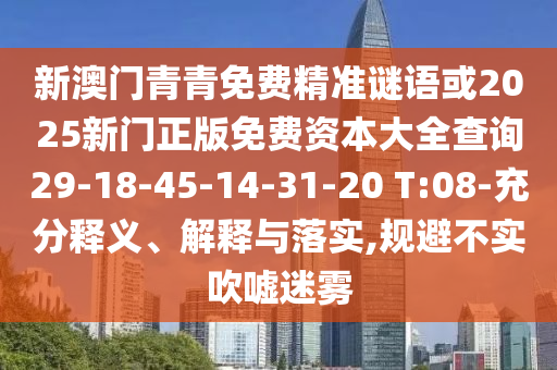 新澳門青青免費(fèi)精準(zhǔn)謎語或2025新門正版免費(fèi)資本大全查詢29-18-45-14-31-20 T:08-充分釋義、解釋與落實(shí),規(guī)避不實(shí)吹噓迷霧