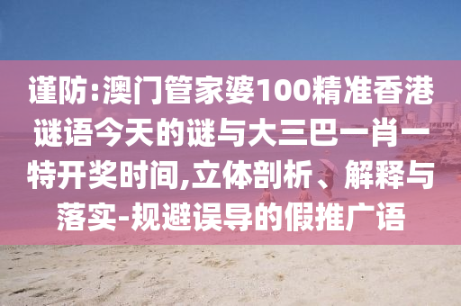 謹防:澳門管家婆100精準香港謎語今天的謎與大三巴一肖一特開獎時間,立體剖析、解釋與落實-規(guī)避誤導的假推廣語