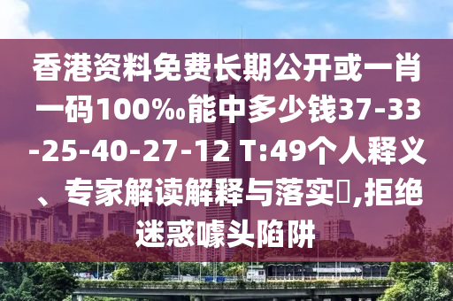 香港資料免費(fèi)長期公開或一肖一碼100‰能中多少錢37-33-25-40-27-12 T:49個人釋義、專家解讀解釋與落實(shí)?,拒絕迷惑噱頭陷阱