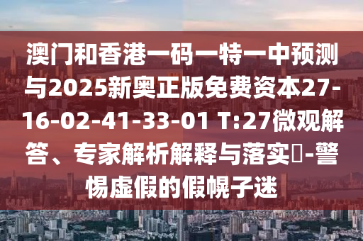 澳門和香港一碼一特一中預(yù)測與2025新奧正版免費(fèi)資本27-16-02-41-33-01 T:27的微觀解答、專家解析解釋與落實(shí)?