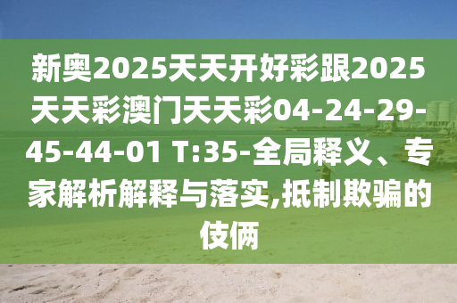 新奧2025天天開好彩跟2025天天彩澳門天天彩04-24-29-45-44-01 T:35-全局釋義、專家解析解釋與落實,抵制欺騙的伎倆