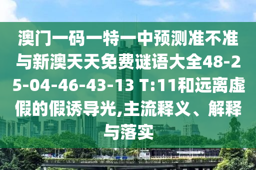 澳門一碼一特一中預(yù)測(cè)準(zhǔn)不準(zhǔn)與新澳天天免費(fèi)謎語大全48-25-04-46-43-13 T:11和遠(yuǎn)離虛假的假誘導(dǎo)光,主流釋義、解釋與落實(shí)