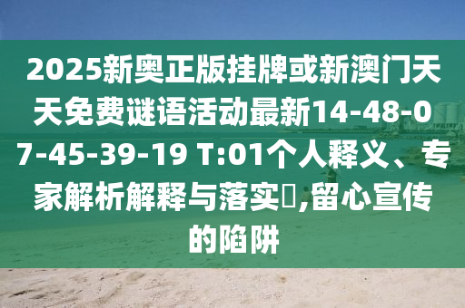 2025新奧正版掛牌或新澳門天天免費謎語活動最新14-48-07-45-39-19 T:01個人釋義、專家解析解釋與落實?,留心宣傳的陷阱