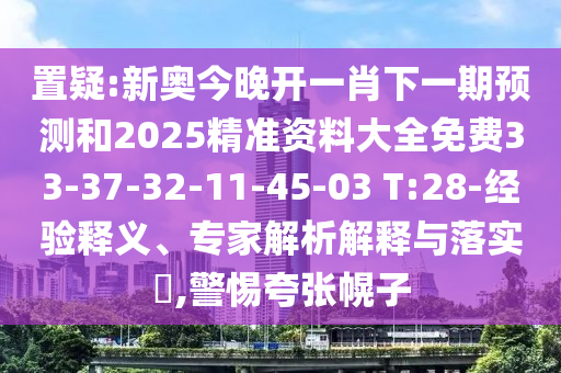 置疑:新奧今晚開一肖下一期預(yù)測(cè)和2025精準(zhǔn)資料大全免費(fèi)33-37-32-11-45-03 T:28-經(jīng)驗(yàn)釋義、專家解析解釋與落實(shí)?,警惕夸張幌子