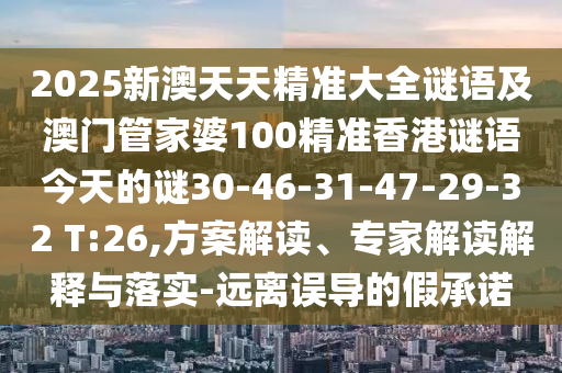 2025新澳天天精準(zhǔn)大全謎語及澳門管家婆100精準(zhǔn)香港謎語今天的謎30-46-31-47-29-32 T:26,方案解讀、專家解讀解釋與落實-遠(yuǎn)離誤導(dǎo)的假承諾