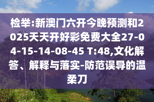 關(guān)于檢舉“新澳門(mén)六開(kāi)今晚預(yù)測(cè)”和“2025天天開(kāi)好彩免費(fèi)大全”等關(guān)鍵詞的文化解答、解釋與落實(shí),以及防范誤導(dǎo)的溫柔刀