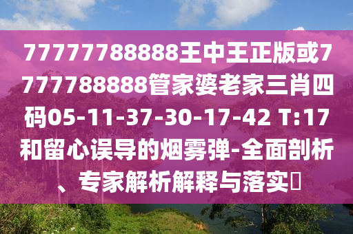 77777788888王中王正版或7777788888管家婆老家三肖四碼05-11-37-30-17-42 T:17和留心誤導(dǎo)的煙霧彈-全面剖析、專家解析解釋與落實(shí)?